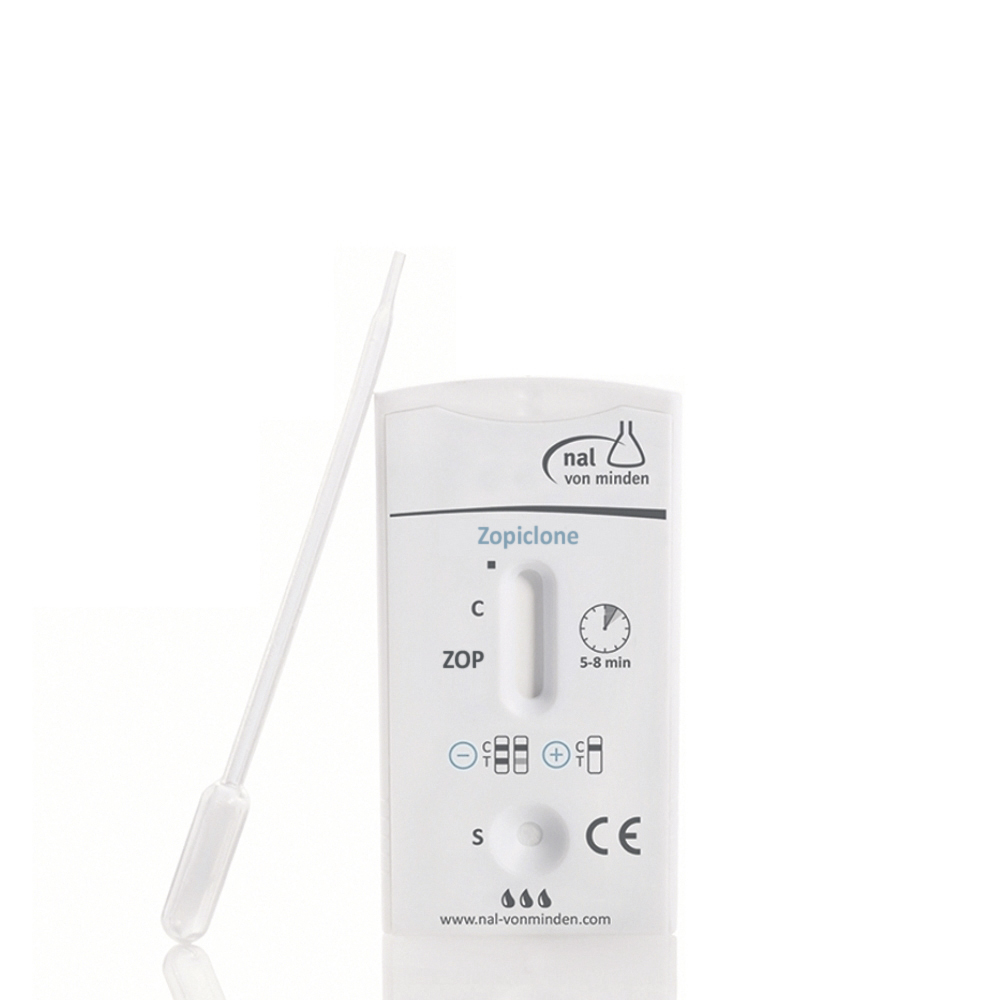 Differentieret påvisning af Z-medicin Indtil nu har det været vanskeligt at påvise misbrug af Z-medicin. Selv om aktivitetsspektret ligner benzodiazepinernes, er den kemiske struktur meget forskellig, hvilket betyder, at de ikke vil blive opdaget af benzodiazepin-screeningstests. Men nal von minden tilbyder nu urinsnabbtests til specifik påvisning af alle Z-stoffer – inklusive zopiclon.
