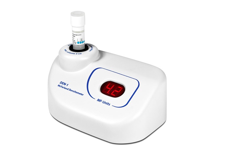 - Måleområde: 0,5 til 4,0 McFarland-enheder (DEN-1), 0,0 til >7,5 McFarland-enheder (DEN-1B)