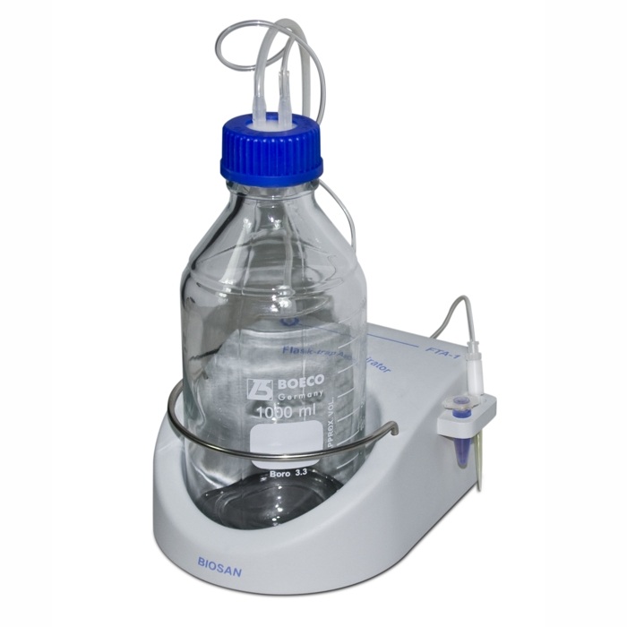 Aspiratoren med fældekolbe FTA-1 med en 1L fældekolbe er designet til aspiration eller fjernelse af resterende alkohol eller buffer fra mikrotestrørets vægge under DNA/RNA-oprensning og andre makromolekyle-repræcipitationsteknikker. Et ideelt personligt værktøj til uafhængig drift væk fra en inline labvacuumforsyning.