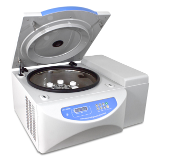 Bordcentrifuge med køling med et temperaturindstillingsområde på -10 °C til +25 °C. Udskiftelige rotorer til centrifugerør (10 til 15 ml eller 50 ml) eller mikroplader.