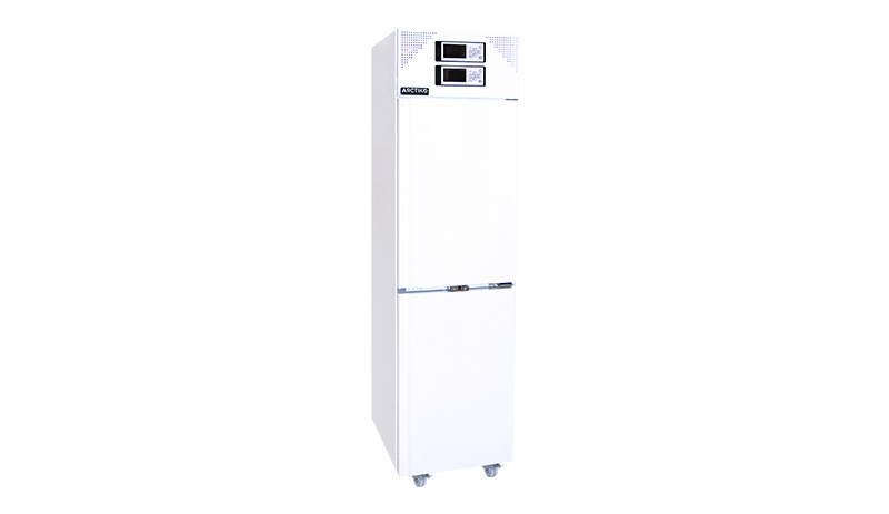 LFF270 – Kombineret laboratoriekøleskab/fryser. Dobbeltkammer med separate kompressorer og regulatorer, +1°/+10°C og -30°/-10°C Volumen køleskab 161 liter, fryser 161 liter
