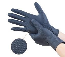 Amabilia Safes nitrilhandsker med diamantstruktureret finish er ideelle til en række forskellige brancher, herunder fødevarer, produktion og kemikaliehåndtering. Fås også i orange.