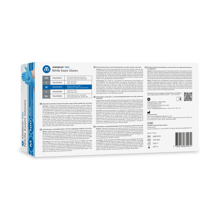 Nitrilhandske Exam Blue – Amabilia Pro – Størrelser: XS-XL