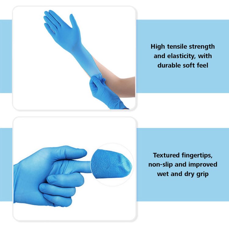 Specifikationer: AQL 1.5, medicinsk kvalitet, livsmedelskvalitet, mikrotexturerad, pulverfri, latexfri, silikonfri, ftalatfri.