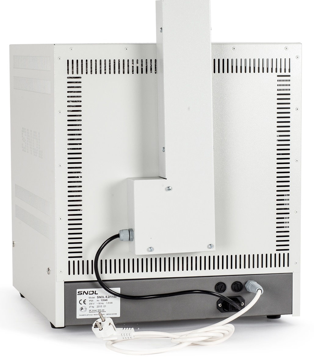 SNOL 39/1100 askeovn med vakuumformet keramisk fiberkammer er designet til aske- og afbrændingsprocesser op til 1100 °C. Den ventilatorassisterede skorsten gør det muligt at fjerne røgen fra kammeret under processen.