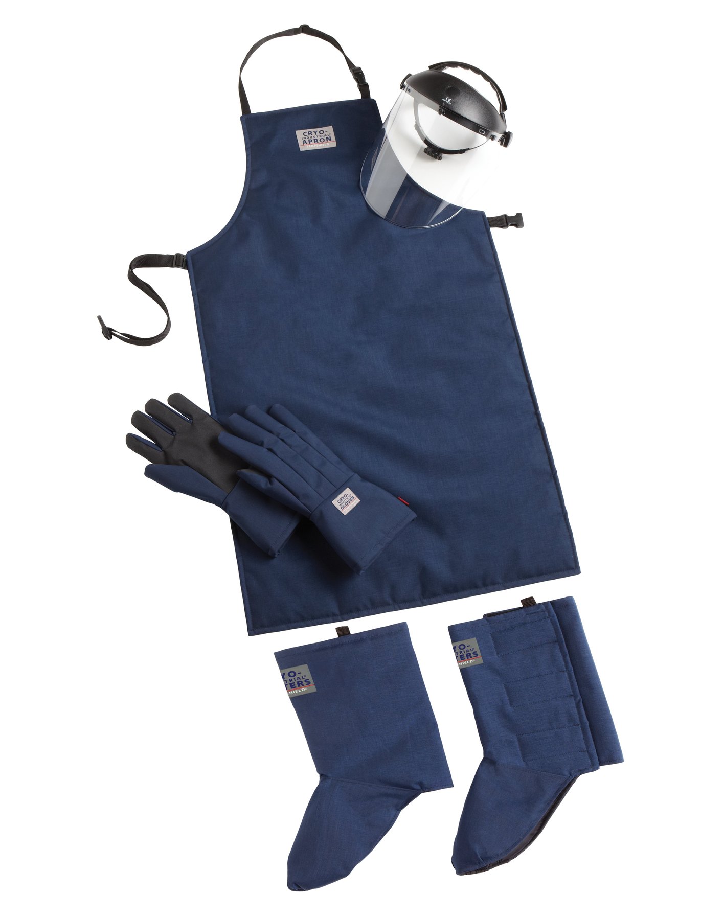 Cryo-Industrial® Safety Kits indeholder de vigtigste personlige værnemidler fra top til tå til dem, der arbejder med kryogene væsker i industrielle miljøer. Hvert sæt indeholder et par Cryo-Industrial® handsker, et Cryo-Industrial® forklæde, et par Cryo-Industrial® gamacher og et Cryo-Protection® ansigtsskærm.