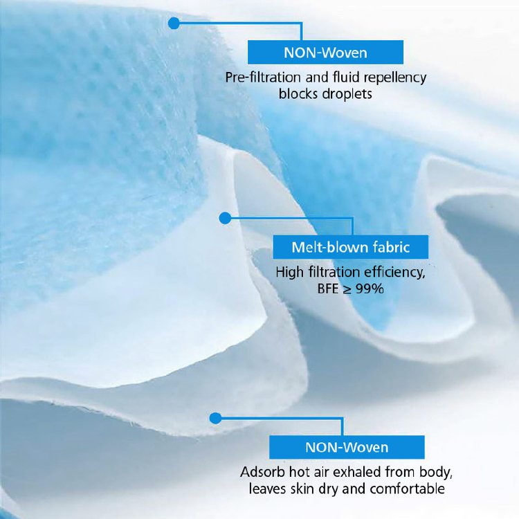 Medicinske/kirurgiske engangshøreværn af højeste kvalitet. Ultralydssvejset for stærk konstruktion og holdbarhed. Hudvenligt stof, elastiske ørebøjler og justerbar næsebøjle giver god pasform og tæthed. Bakteriefiltreringseffektivitet på over 99,8 % samt meget høj stænk- og væskebestandighed.
